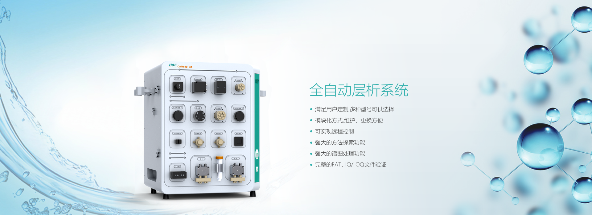 QuikSep A1 全自動桌面層析系統(tǒng)是為實驗室級別的生物制品純化工藝開發(fā)及樣品制備而專門設(shè)計的層析系統(tǒng)。系統(tǒng)自動化程度高,可進(jìn)行密集的程序化方法探索,軟件功能強(qiáng)大,硬件支持多種規(guī)格層析柱、多路溶劑及樣品。該系統(tǒng)采用模塊化、功能化、智能化設(shè)計,方便客戶根據(jù)自己的實際需要選擇最適合自己的具體配置。