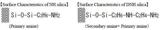 ? ?DNH硅膠鍵合的二元胺和一元胺是NH硅膠的2倍?;谶@個原因,DNH硅膠的堿度要比NH硅膠強,并且由于碳鏈較長,DNH硅膠的氫鍵作用要比NH硅膠弱一些。因此,DNH硅膠的流動相要選擇極性小的溶劑,因為DNH硅膠的洗脫速度要比普通的裸硅膠和NH硅膠快。