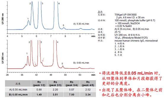 ?????? 抗體藥物中使用的單克隆抗體,在生產(chǎn)、貯藏或運輸過程中可能會形成二聚體等凝聚物,存在引發(fā)不良反應(yīng)的風險因素,故在質(zhì)量控制中采用體積排阻色譜法(SEC)對單克隆抗體進行分離分析?,F(xiàn)有的TSKgel?G3000SWXL色譜柱常用于此用途,但仍需要更高分離度以及更短分析時間的SEC分析技術(shù)?,F(xiàn)在2μm粒徑的高性能SEC?色譜柱TSKgel?UP-SW3000已實現(xiàn)了商品化,給您帶來更高效更快捷的分離體驗!