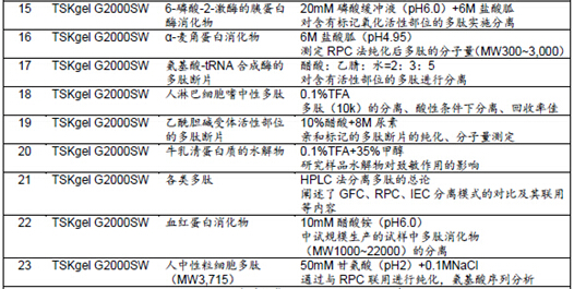 表1所示為TSKgel色譜柱在采用GFC法進(jìn)行多肽分離的相關(guān)文獻(xiàn)及其概要。