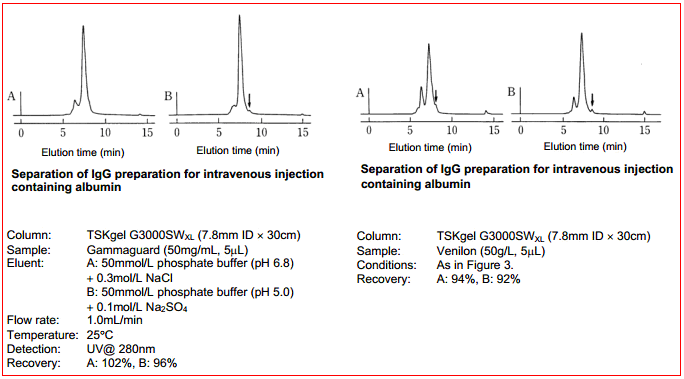 1. TSKgel SW-型填料由含二醇基官能團的剛性球形硅膠顆粒組成。