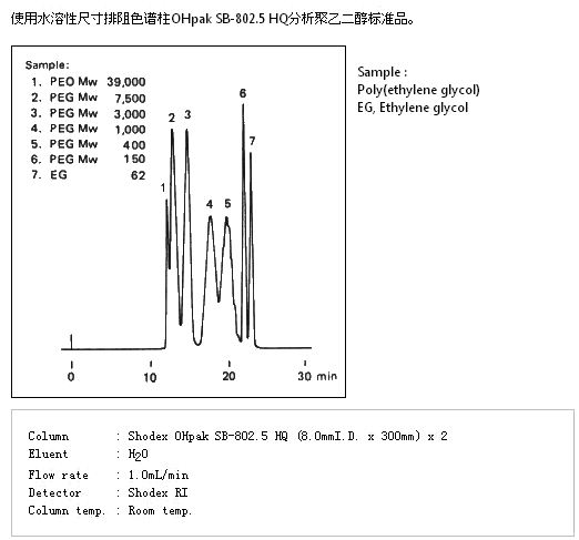 SB-802.5 HQ色譜柱是聚合物基質(zhì)的水溶性SEC色譜柱,適用于各種分子量范圍的測定。溶劑可用DMF替換(除SB-802 HQ和SB-807 HQ以外),可分析極性聚合物。SB-804 HQ、SB-805 HQ可用于測定明膠的平均分子量。