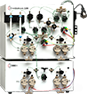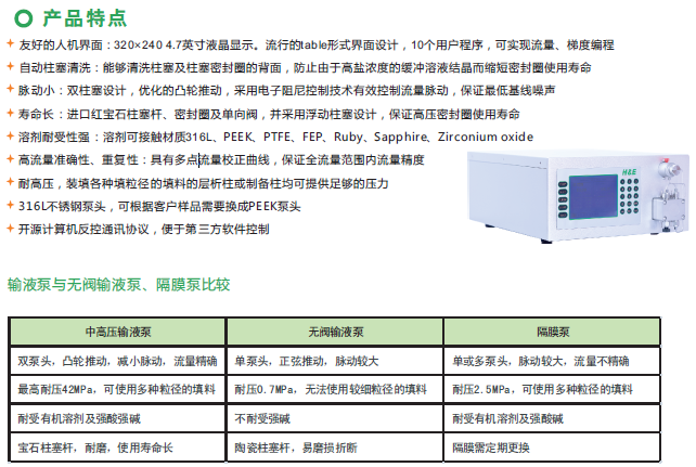 柱塞泵是目前液相色譜主流的輸液單元,特別是雙柱塞往復(fù)泵。它有一個(gè)精心設(shè)計(jì)的偏心凸輪,用同步電機(jī)或變速直流電機(jī)驅(qū)動(dòng)偏心凸輪,偏心凸輪再推動(dòng)兩活塞作往復(fù)運(yùn)動(dòng)。偏心凸輪短半徑端所對應(yīng)的活塞向外伸,使該活塞的下單向閥打開吸入流動(dòng)相,與此同時(shí),偏心凸輪的長半徑端所對應(yīng)的另一活塞被推入,使其上單向閥打開,并將流動(dòng)相送至色譜柱。具有操作方便、流速穩(wěn)定、壓力脈動(dòng)小、故障率低的優(yōu)點(diǎn)。